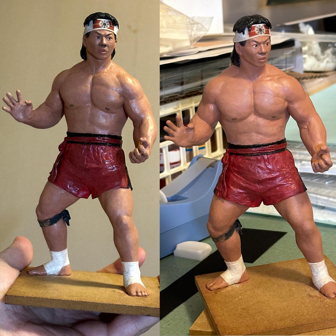 ** Update: the base will not have a glass case or dome. It will simply be the Kumite canvas platform. Lastly, Chong Li’s shorts and sash will be getting an upgrade to full fabric!